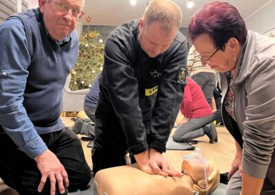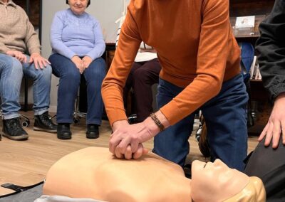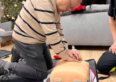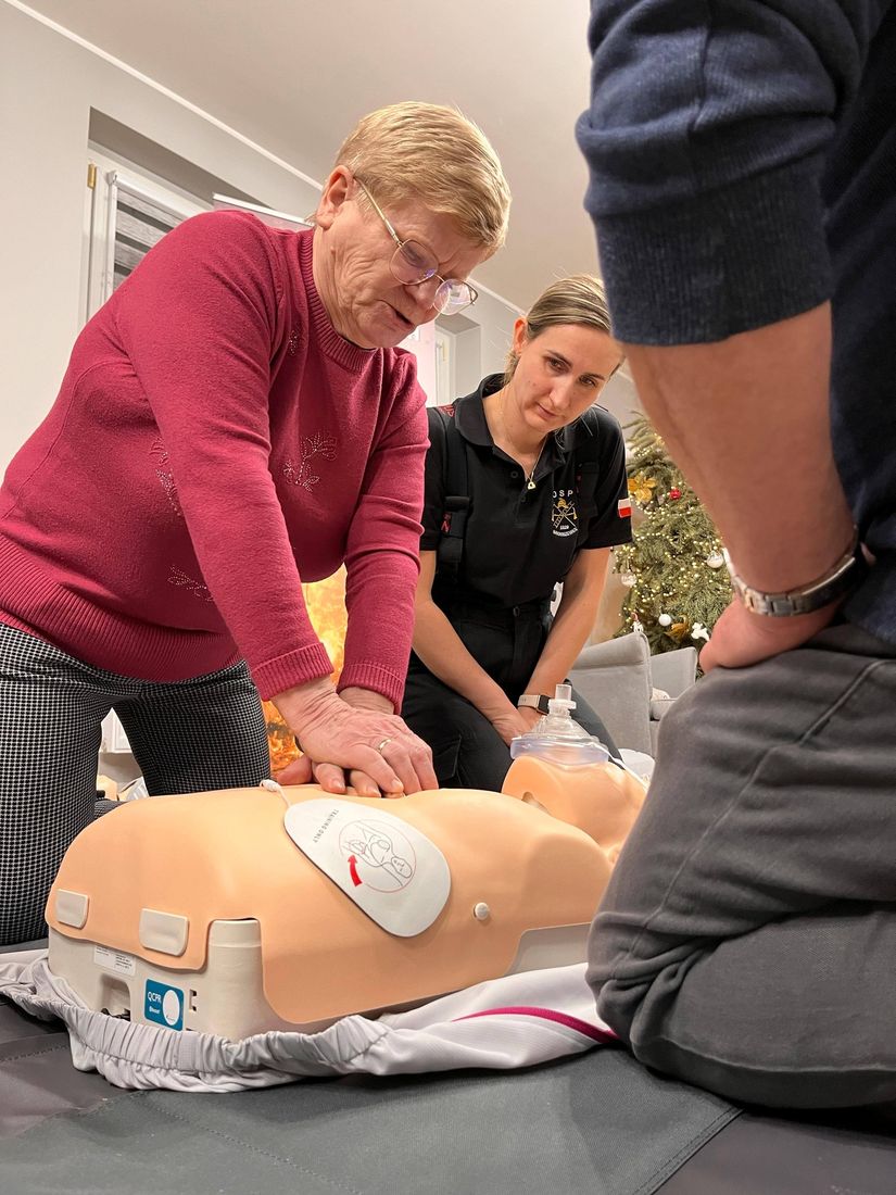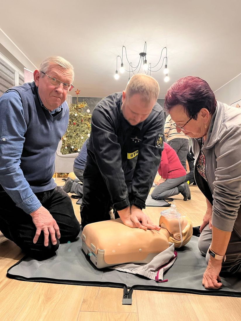 Uczestnicy mieli okazję zdobyć praktyczną wiedzę, nauczyć się, jak reagować w sytuacjach zagrożenia życia oraz przypomnieć sobie podstawowe zasady udzielania pomocy 💪❤️ Wiedza ta daje poczucie bezpieczeństwa i realnie może uratować czyjeś zdrowie lub życie.