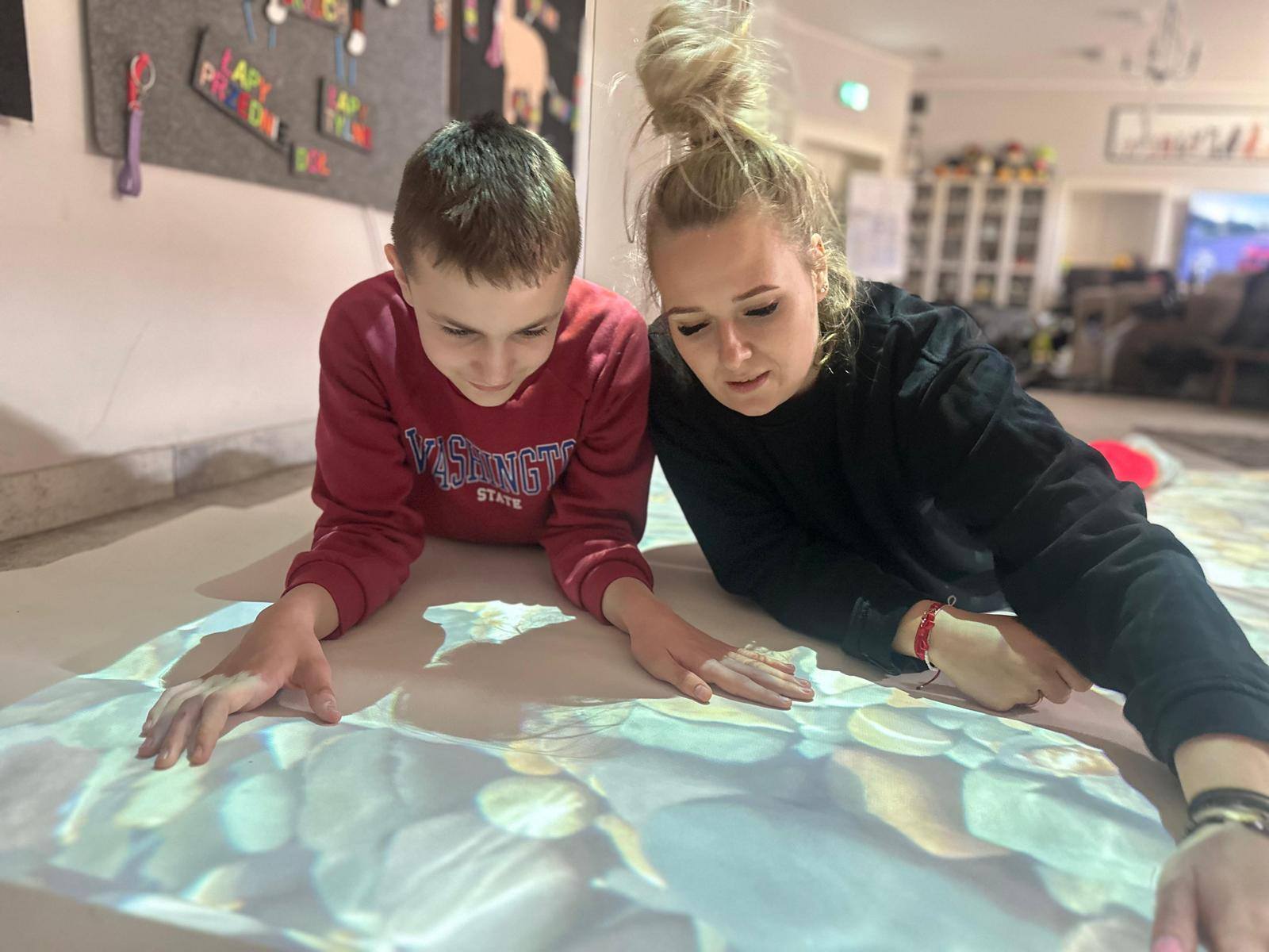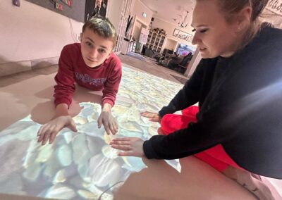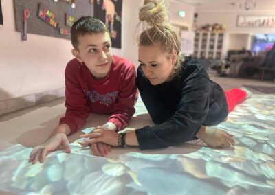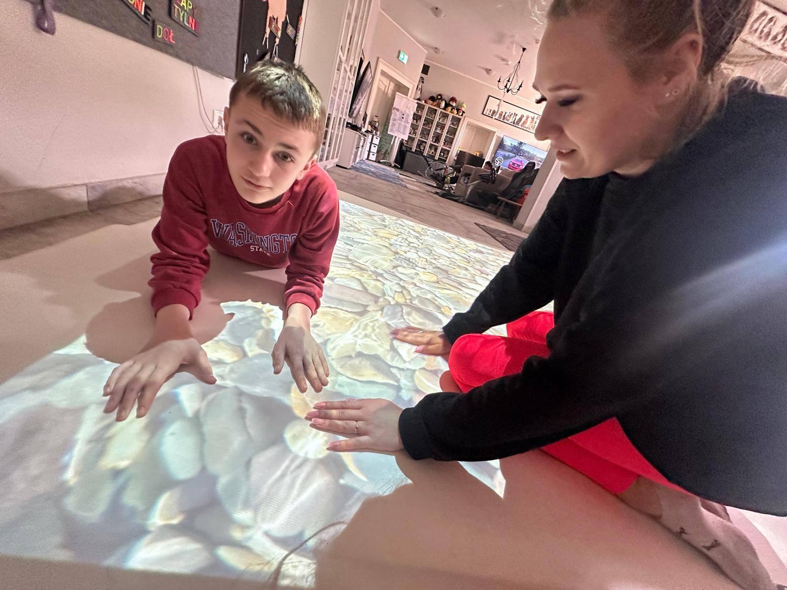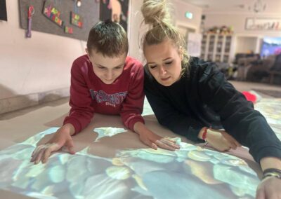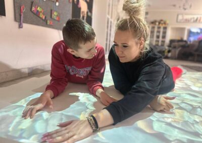 Dziś szczególną uwagę chcemy poświęcić Adzie, która niedawno dołączyła do naszego terapeutycznego zespołu. Podczas zajęć wykorzystała interaktywną matę – narzędzie, które łączy ruch, zabawę i naukę. Dzięki niej dzieci mogą ćwiczyć koordynację, koncentrację oraz reagowanie na bodźce w sposób angażujący i dostosowany do ich indywidualnych potrzeb.