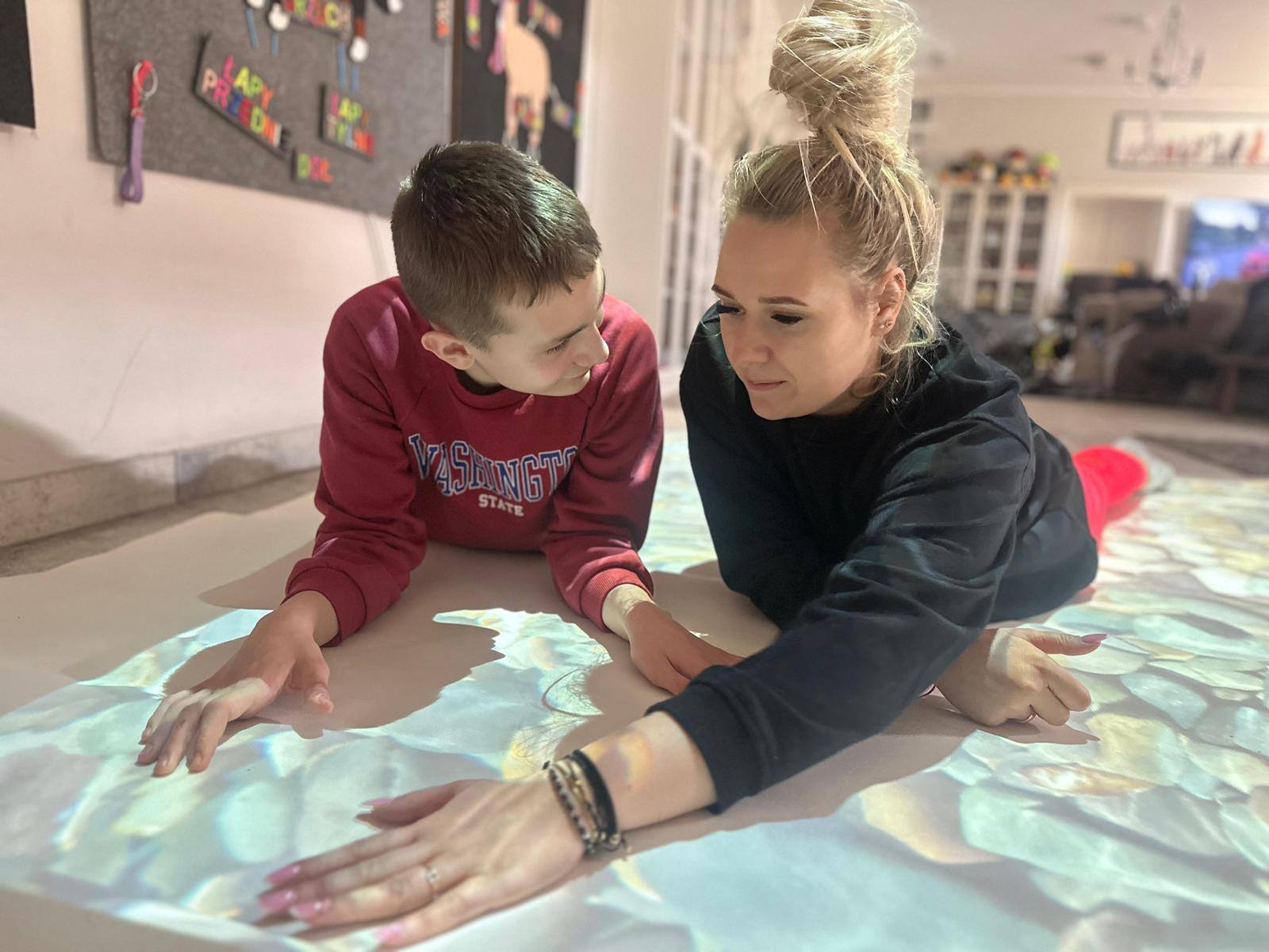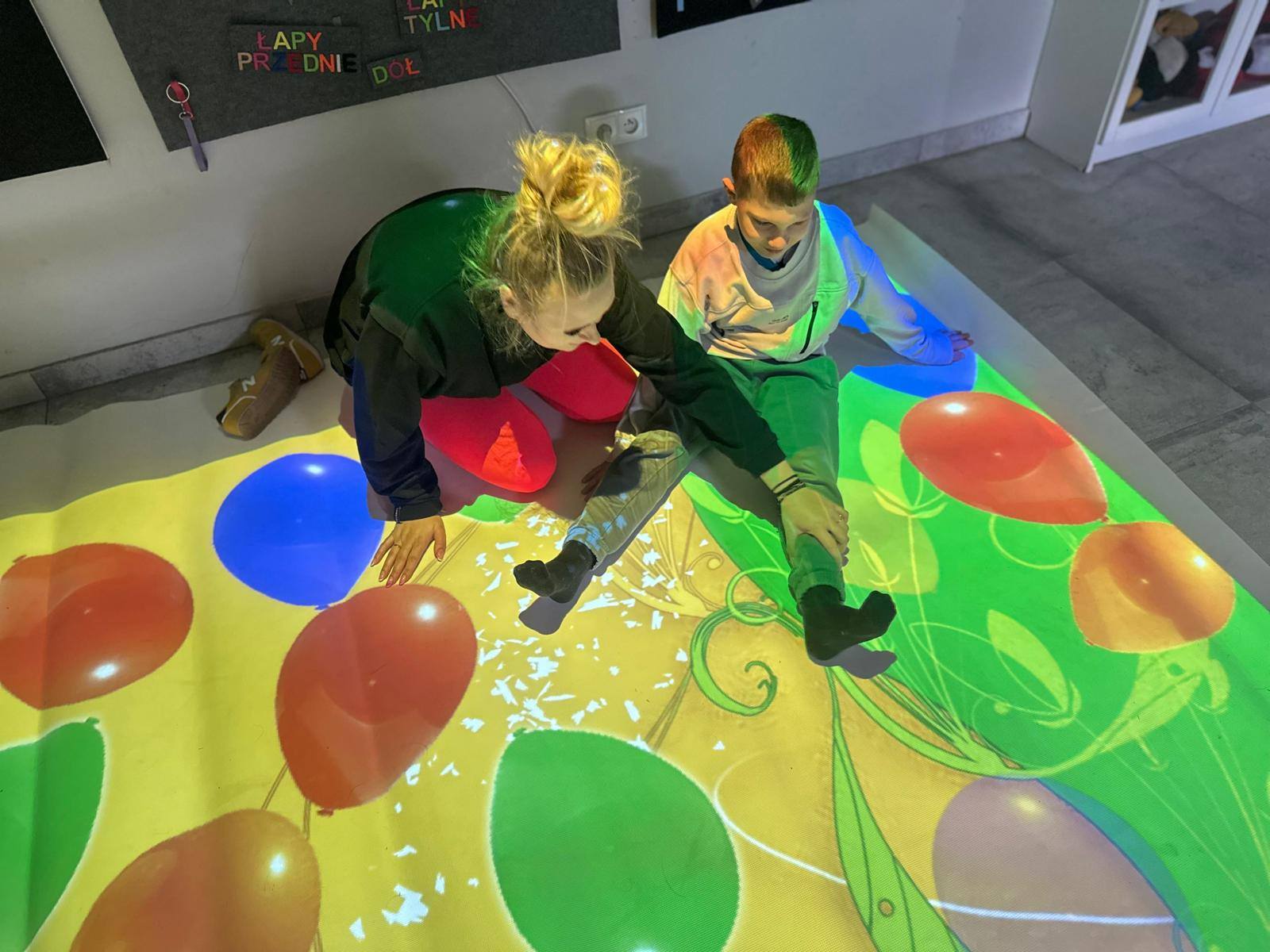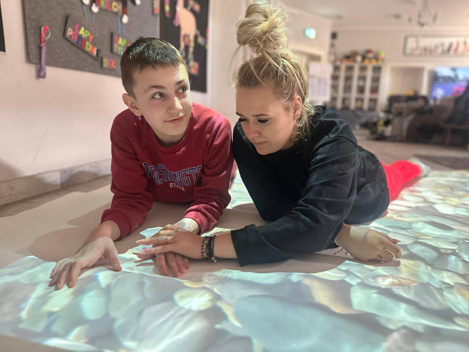Dziś szczególną uwagę chcemy poświęcić Adzie, która niedawno dołączyła do naszego terapeutycznego zespołu. Podczas zajęć wykorzystała interaktywną matę – narzędzie, które łączy ruch, zabawę i naukę. Dzięki niej dzieci mogą ćwiczyć koordynację, koncentrację oraz reagowanie na bodźce w sposób angażujący i dostosowany do ich indywidualnych potrzeb.